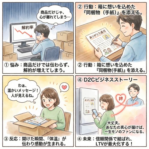 D2Cの解約を食い止める戦略の核心は、「箱の中に、あなたという人を存在させること」です。