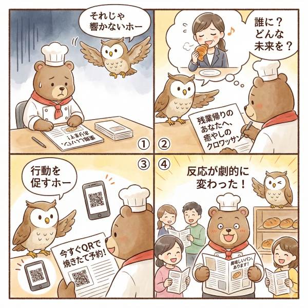 メインのキャッチコピーの横に、店主の似顔絵と一緒に「実は、私もこれで悩んでいたんです…」といった一言を添えてみてください。これだけで、信頼感が一気に増します。