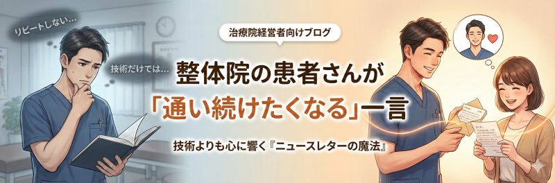 整体院を経営する先生方から、もっとも多く寄せられる悩みです。実は、患者様がリピートするかどうかを決めるのは、施術室の中だけではありません。院を出た後、「先生は自分のことを気にかけてくれている」と感じる瞬間に、次回の来院が決まります。