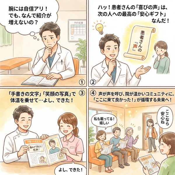 患者さんの声をニュースレターに載せることは、単なる「お客様の声紹介」ではありません。これは、信頼を築き、コミュニティを育て、リピート率と紹介率を同時に高める、最も誠実で効果的なマーケティング手法です。