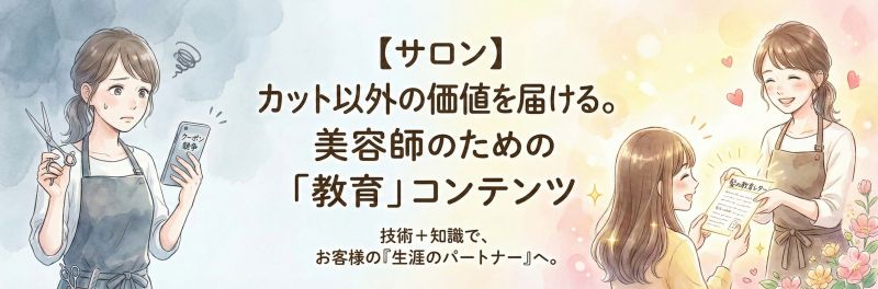 だからこそ、カット以外の価値——つまり「教育」をお客様に届けることが、長く愛されるサロンの秘訣なんです。