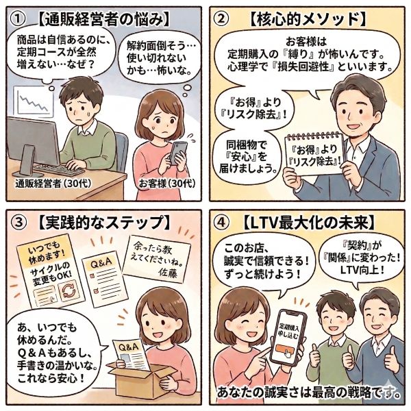【通販】「定期縛り」への心理的障壁を下げる、安心の同梱物