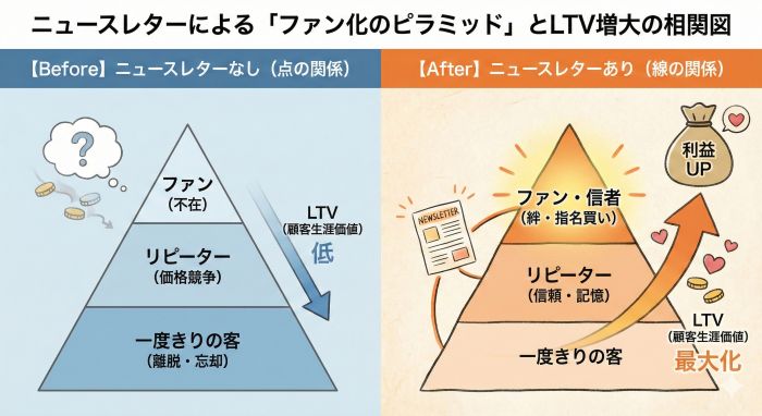 広告費は「消費」だが、ニュースレターは「投資」である。 新規集客の地獄から抜け出し、生涯顧客(LTV)を最大化する計算式。 感情を大切にする経営者が、最後に「数字」でも勝つための経済ロジック。