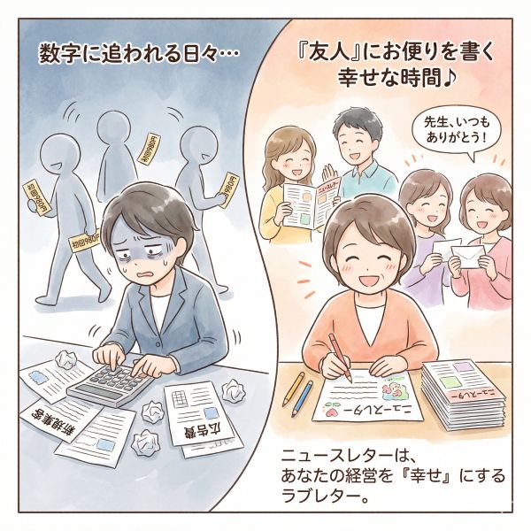 これからお伝えするのは、単なる「集客術」ではありません。あなたの温かい想いを、1枚の紙に乗せて届ける「ニュースレター」という名のラブレターの書き方です。この記事が、あなたの経営をもっと優しく、もっと豊かなものにする道標(みちしるべ)になれば幸いです。
