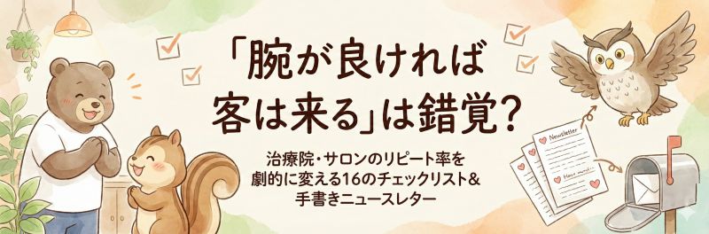 技術以外の部分で「このお店に来て本当に良かった!」と思ってもらえたとき、あなたの院は、広告を出さなくても予約が埋まる「地域No.1の繁盛店」に変わるはずです。