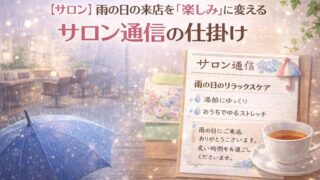 リピート・ファン化 【サロン】雨の日の来店を「楽しみ」に変える、サロン通信の仕掛け 雨の日の来店をポジティブな体験に変えるサロン通信の活用方法を解説。お客様との関係を深め、リピート率とLTVを高めるニュースレターの実践アイデアを紹介します。 2026.03.08 リピート・ファン化