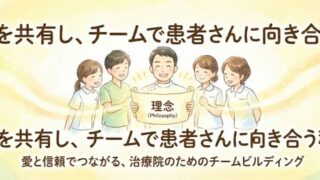 組織・マネジメント 【治療院】理念を共有し、チームで患者さんに向き合う秘訣 治療院の理念をスタッフと共有し、チームで患者さんに向き合うための実践方法を解説。性善説経営と情緒的価値を軸に、LTVと信頼関係を高める院づくりのヒントをお伝えします。 2026.02.02 組織・マネジメント
