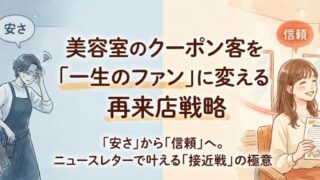 クーポンサイトからの新規客がリピートせず悩んでいる美容室経営者へ。安売り競争から脱却し、クーポン客を「一生のファン」に変えるためのニュースレター活用術を公開。ランチェスター戦略と情緒的価値を軸にした、サロンのための再来店戦略を詳しく解説します。