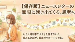 リピート・ファン化 【保存版】ニュースレターの「ネタ」が無限に湧き出てくる、患者さんとの会話の拾い方 「ニュースレターに書くネタがない……」と悩む院長先生必見!患者さんとの何気ない会話こそが、最高のリピートを生む「お宝ネタ」の宝庫です。今日からすぐに使える「お宝キーワードの拾い方」と、心を通わせる文章術をプロが伝授します。 2026.02.04 リピート・ファン化