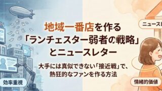 商売の本質・哲学 地域一番店を作る「ランチェスター弱者の戦略」とニュースレター 大手の進出や価格競争に悩む小規模店経営者必見。ランチェスター戦略の「弱者の兵法」をニュースレターに落とし込み、地域一番店になるための具体策を解説します。接近戦と情緒的価値で、LTV(顧客生涯価値)を最大化する経営哲学を学びましょう。 2026.01.30 商売の本質・哲学